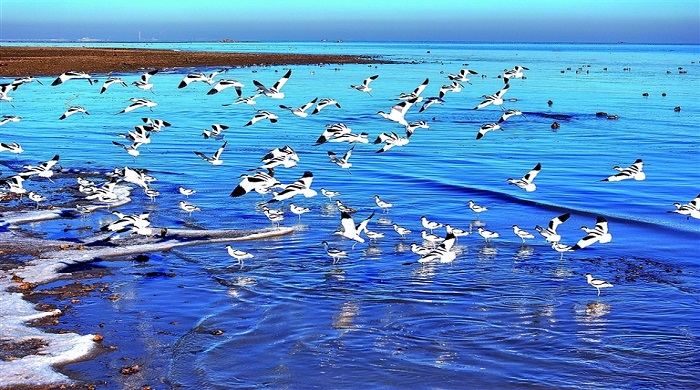 Recently, a flock of migratory birds has been seen flying and foraging in the coastal wetlands of Lianyun District. As winter arrives, a host of migratory birds have migrated to the coastal wetlands of our city to settle down. They forage, rest, and fly in groups on the mudflats, creating a beautiful ecological picture in winter.