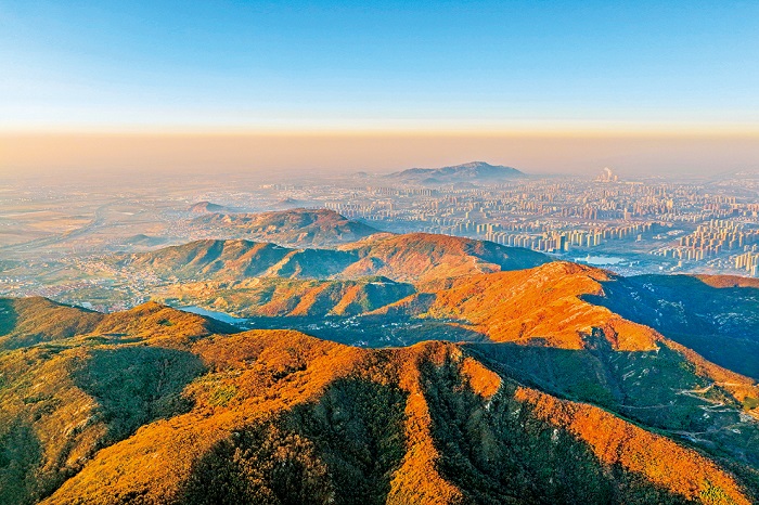 On November 19, Huaguo Mountain was resplendent with a riot of colors in the morning glow. During the early winter, the forests on Huaguo Mountain were ablaze with a myriad of hues, resembling a natural painting that was breathtakingly beautiful.