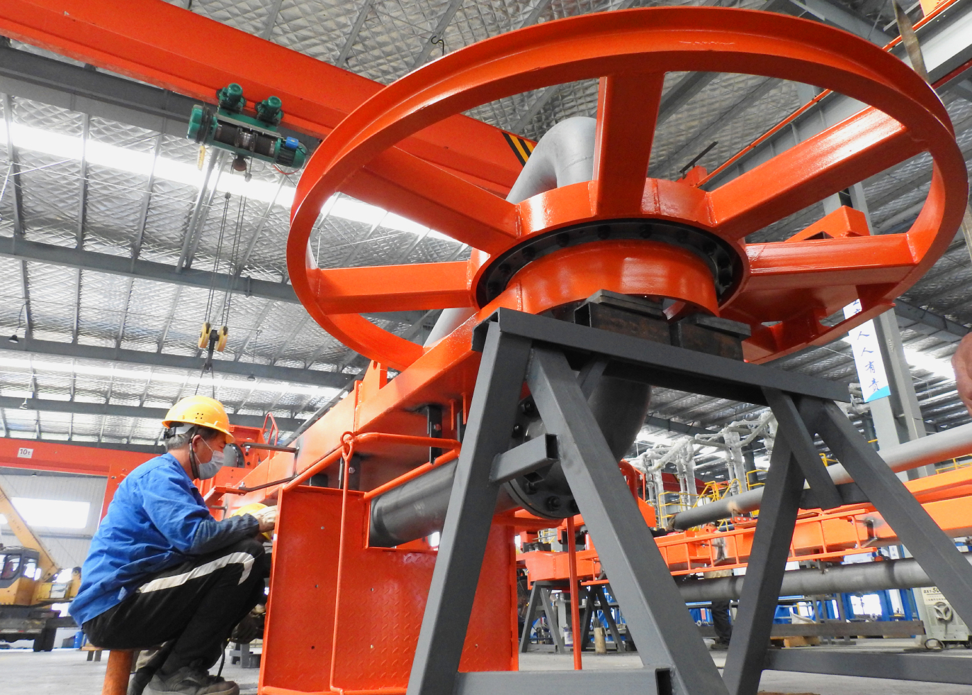 5月6日,连云港海州经济开发区新浦工业园一家科技开发公司,工人正在安装一批陆用流体装卸臂。“五一”假期过后,连云港市众多工业企业加紧生产,满足客户和市场需求。