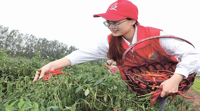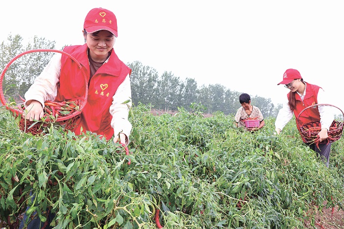 日前,灌南县田楼镇田楼村循环经济园,乡村振兴专干和农户一起收获辣椒供应市场。入秋以来,田楼镇组织全镇志愿者小分队,深入村组田间地头,服务农村助力乡村振兴,受到全镇广大干群好评。