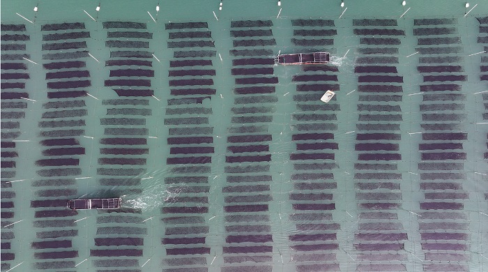 连日来,赣榆区沿海养殖的3万多亩坛紫菜陆续进入头茬收割期,养殖户及时组织采收和转运,“海洋牧场”一派忙碌景象。