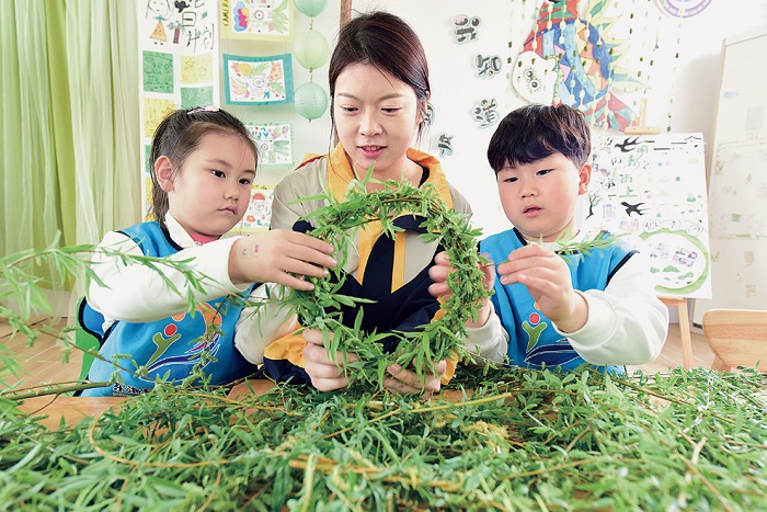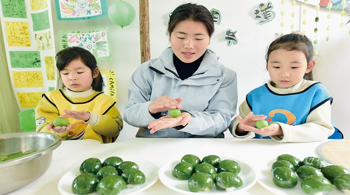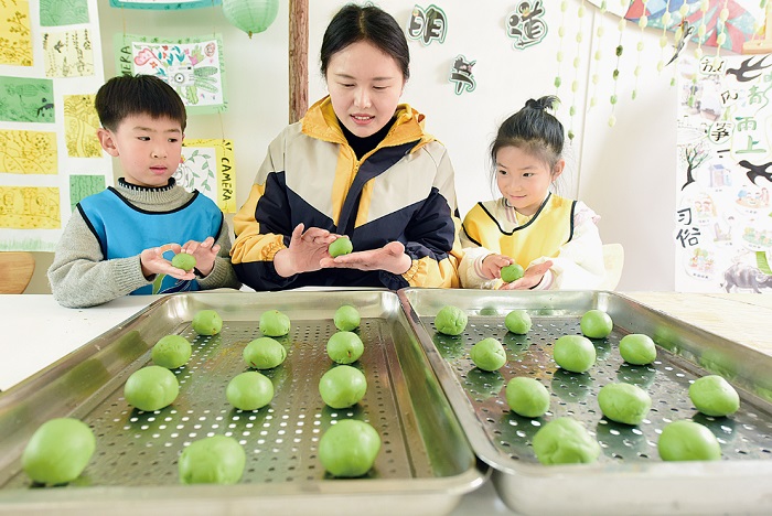 日前,东海县第三幼儿园开展“做青团、戴柳帽、迎清明”主题传统民俗班会,小朋友在老师指导下,通过学习制作手工青团,编柳帽、戴柳帽,体验清明节传统民俗,感受中华文化博大精深的魅力。