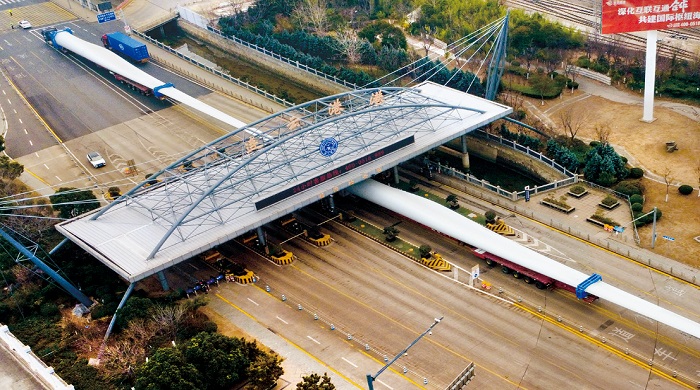 1月14日,市港航公安局交通管理大队护航大件运输车辆进港。连云港口岸已成为我国风电设备出口的核心枢纽之一,出口量连年保持高速增长。为确保装载风电叶片的超长大件运输车安全进港,交通管理大队全程护航大件运输车辆安全入港,助推港口平安发展。