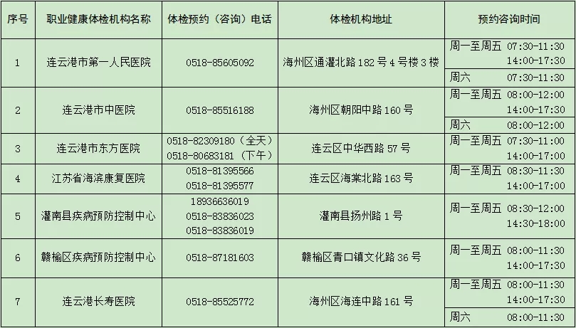 各职业健康体检机构要认真落实《江苏省新冠肺炎疫情期间职业健康监护工作指南》、《连云港市新冠肺炎疫情防控期间职业健康检查机构卫生监督指南》文件要求,落实体检预约制度,充分做好体检期间各项疫情防控工作。暂不进行口腔、耳鼻咽喉科和眼科检查,待疫情结束再补充检查。