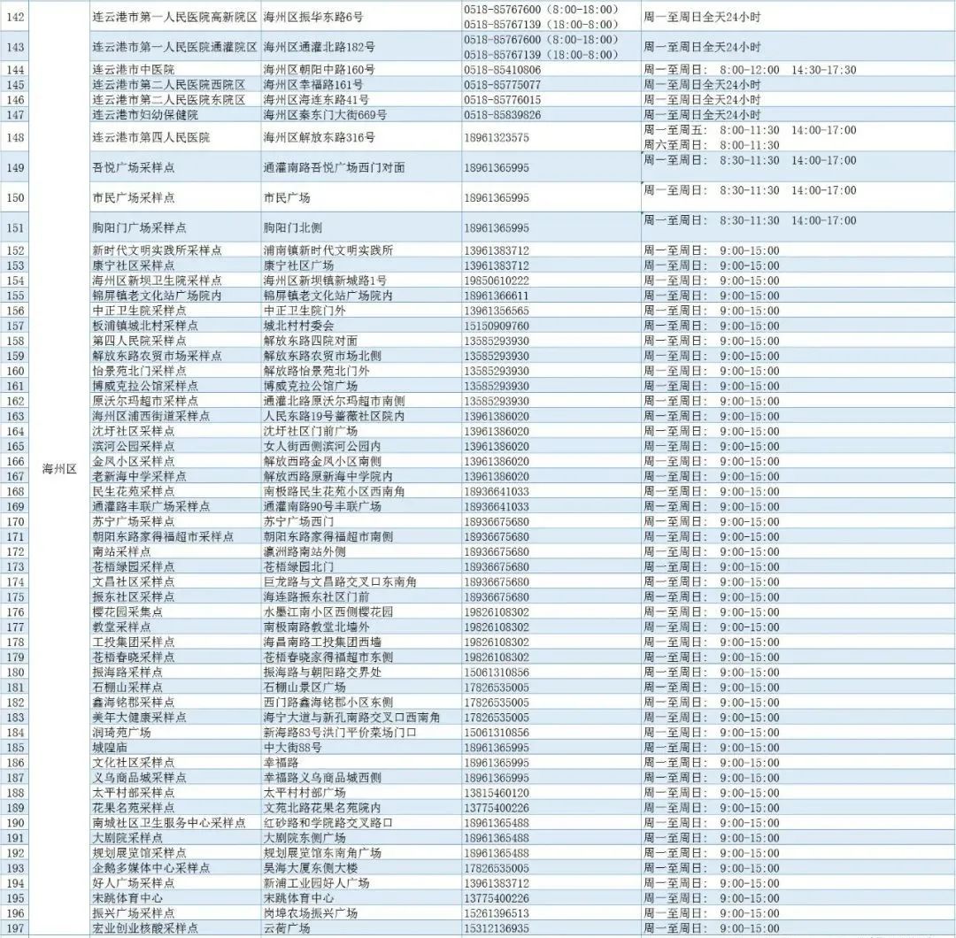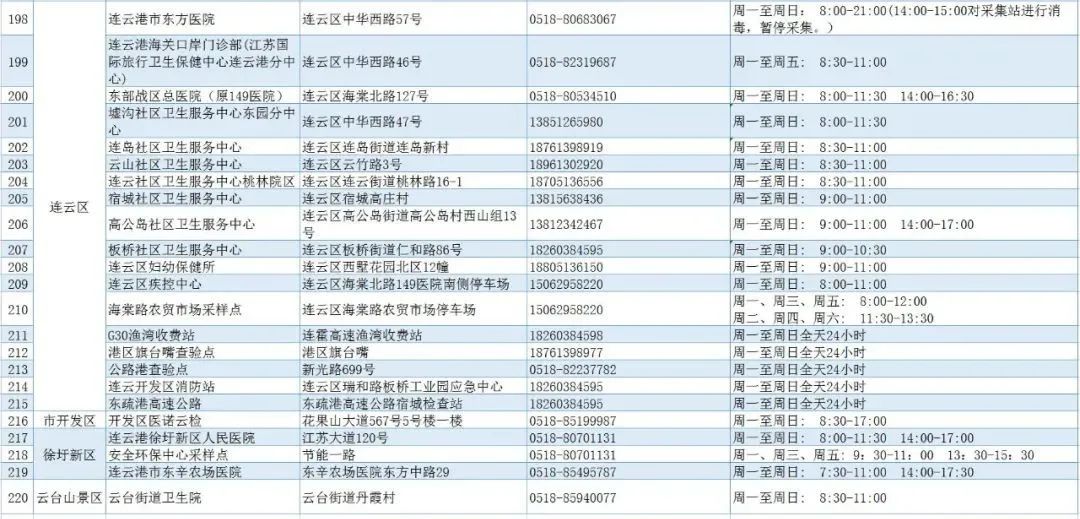 我市辖区内220所新冠病毒核酸检测采样服务点名单更新