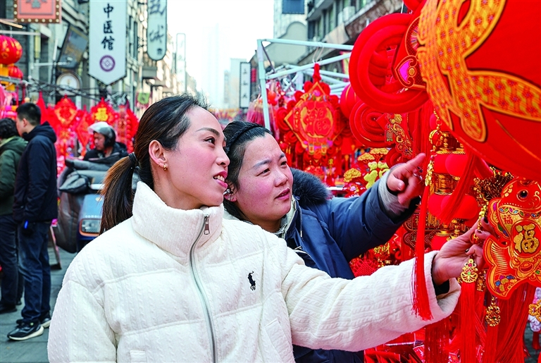 2月11日,市民在年货市场选购春节饰品。随着春节临近,人们抓紧选购春联、彩灯等传统年货,开启“过年模式”,迎接马年新春的到来。
