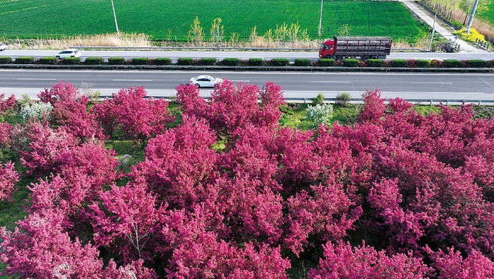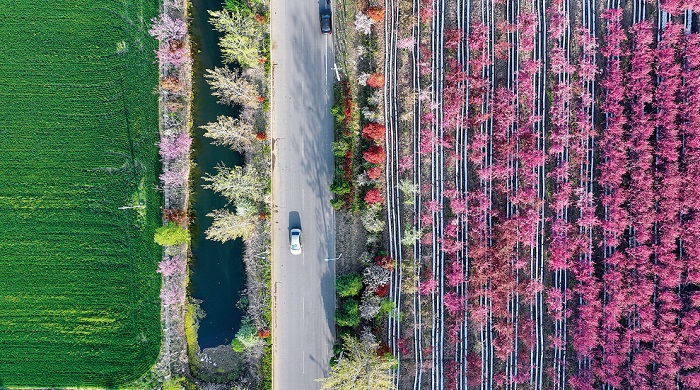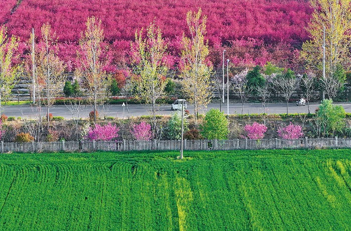 春风拂过大地,我市公路沿线,繁花次第绽放,金黄、粉白、绯红、翠绿交织相映,勾勒出一幅幅路畅业兴、村美民富的美丽画卷。