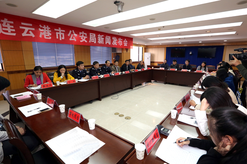 首先,我介绍一下出席今天发布会的各位来宾,连云港市公安局党委委员、政治部主任鲁宏,我是连云港市公安局政治部宣传处处长徐双阳,也是今天新闻发布会的主持人。参加今天发布会的媒体有连云港日报、苍梧晚报、连云港电视台、连网等本地媒体,以及新华日报、扬子晚报、现代快报、江南时报、省电台等省级媒体老师。